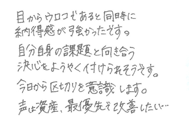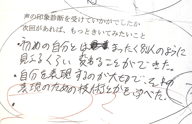 声の印象診断を元に、一人一人に合った実践的な個々の魅力を引き出すコミュニケーションのレッスンを行います。